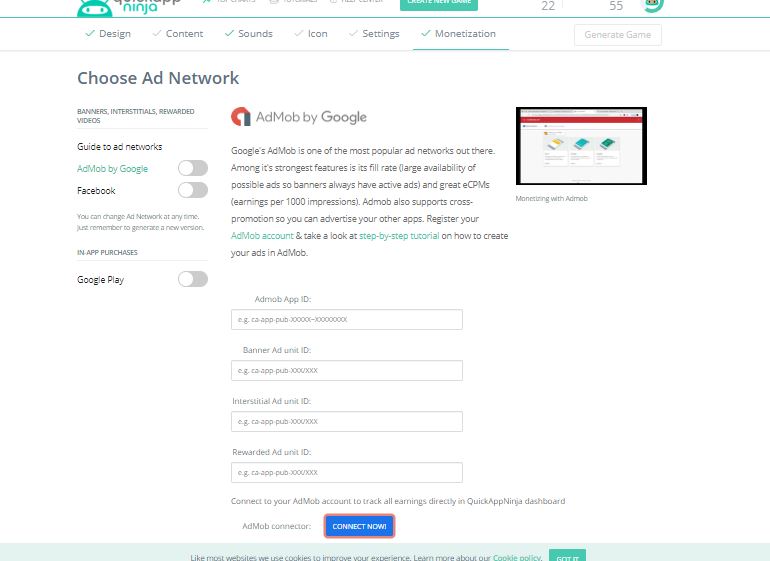 اولا قبل اي شئ عليك بالتسجيل في موقع الاعلانات admob لنأخذ منه الشفرات الاعلانيه ونضعها في التطبيق لنربح منه عن طريق الاعلانات ولو ماتعرفش كيفيه التسجيل بالموقع وماهي شركة Admob فيمكنك معرفه كل شئ يخص شركة (admob ) من هنا بعد ماتنشئ حساب بشركة admob سوف نذهب الي الموقع quickappninja من هنا هذا الموقع يتيح لك عمل تطبيق بكل سهوله ومجاني تماما كل ماعليك هو ان تقوم بالتسجيل في الموقع عن طريق register now وتقوم بوضع الايميل والباسورد الخاص بيك ويفضل ان يكون نفس الايميل الذي قمت بالتسجيل به في موقع admob وبعد التسجيل سيفتح لك الموقع