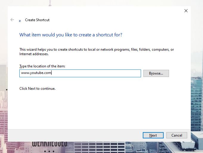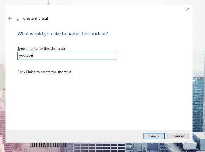 وبعد كتابه الرابط المراد عمل له الاختصار تضغط next ليطلب منك كتابه اسم الاختصار الاسم المراد عرضه لايقونه الاختصار