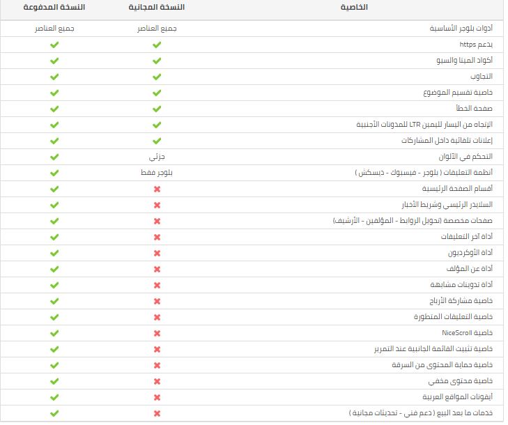 ماهو الفرق بين النسخه المدفوعه والنسخه المجانيه لقالب سكويز: